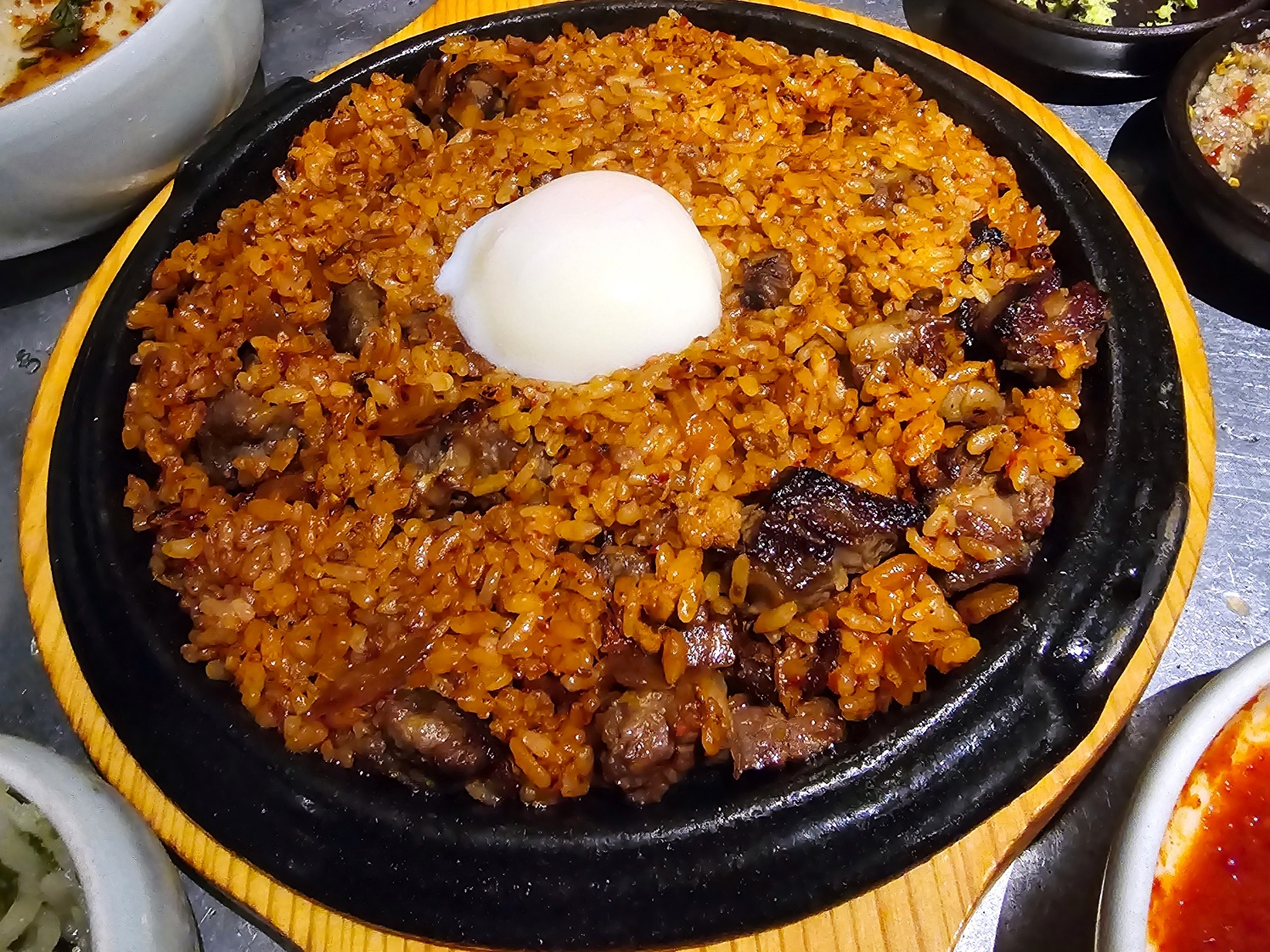 철판에 볶아내는 김치볶음밥은 반숙 달걀 하나가 올라가며 보기만 헤도 군침 도는 비주얼 이었습니다.하지만 먹으면서 솔직히 조금 아쉬웠던건,특별함을 기대했던 제 기준에 비해 맛은 그냥 평범했던거 같습니다.묵은지 특유의 맛은 좋았지만,다른 고깃집 볶음밥과 크게 다르지 않았던것 같습니다.